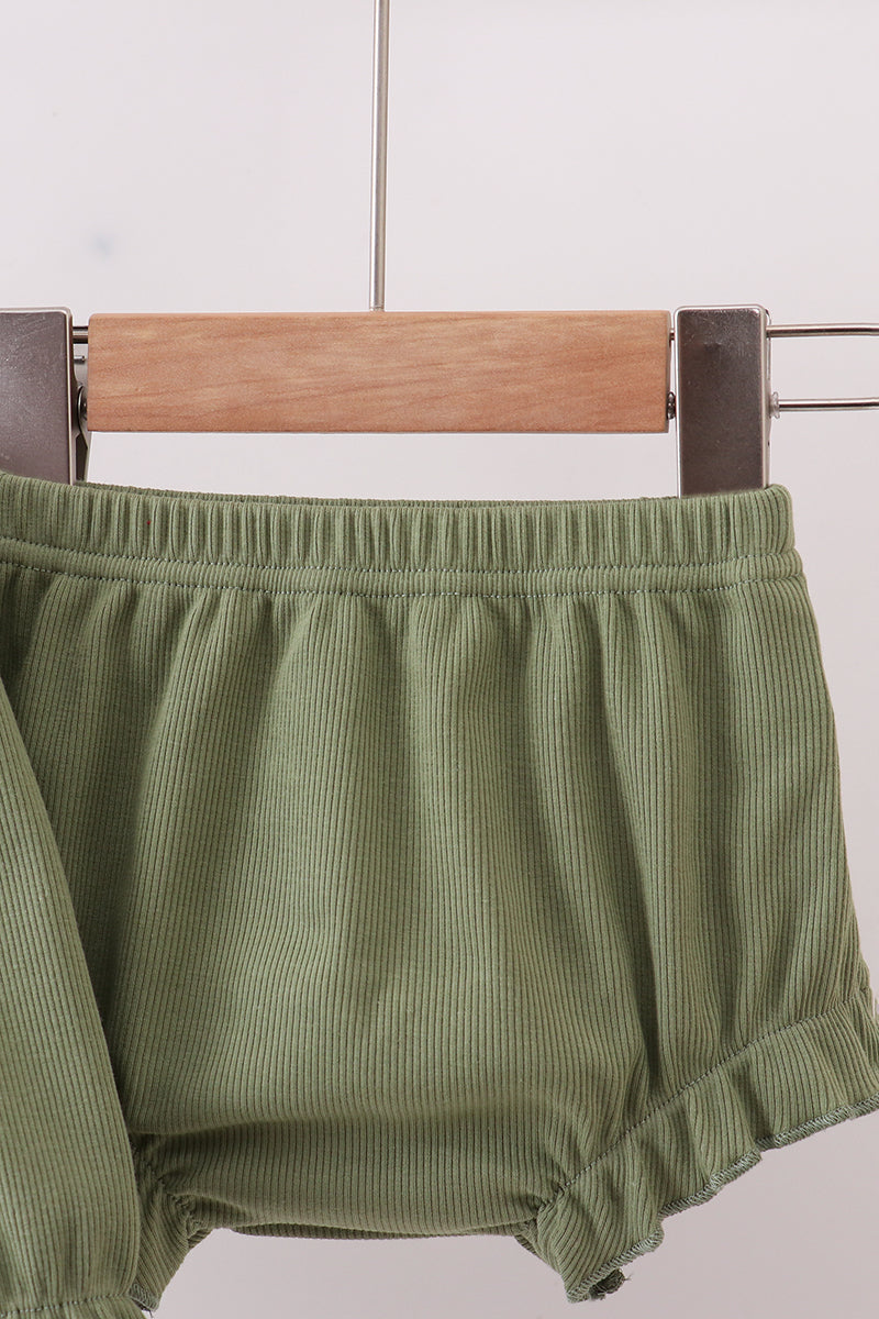 Green christmas tree embroidery ribbon ruffle bloomer set