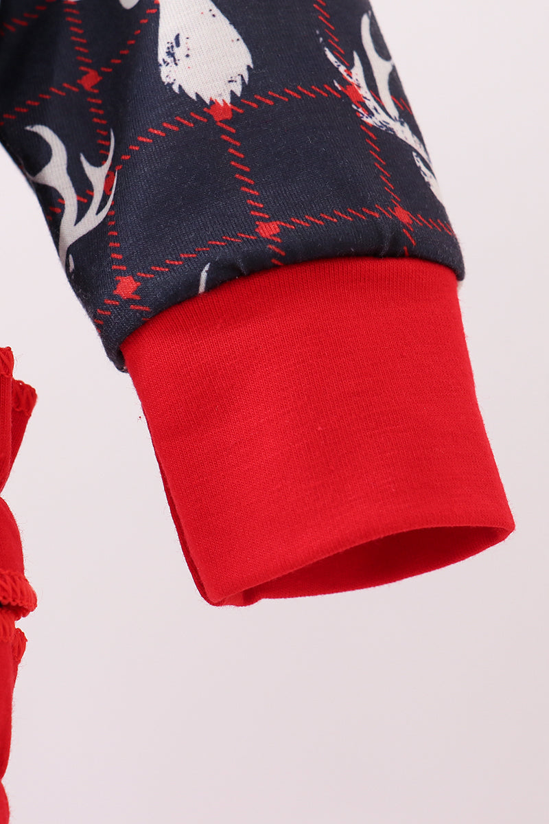 This navy romper, adorned with a charming deer print and playful ruffles, brings a touch of whimsy to any outfit. Its lightweight fabric ensures comfort, while the ruffle details add a fun, flirty vibe perfect for sunny days and casual adventures. Mix and match it with sandals or sneakers for an effortlessly cute look that stands out.