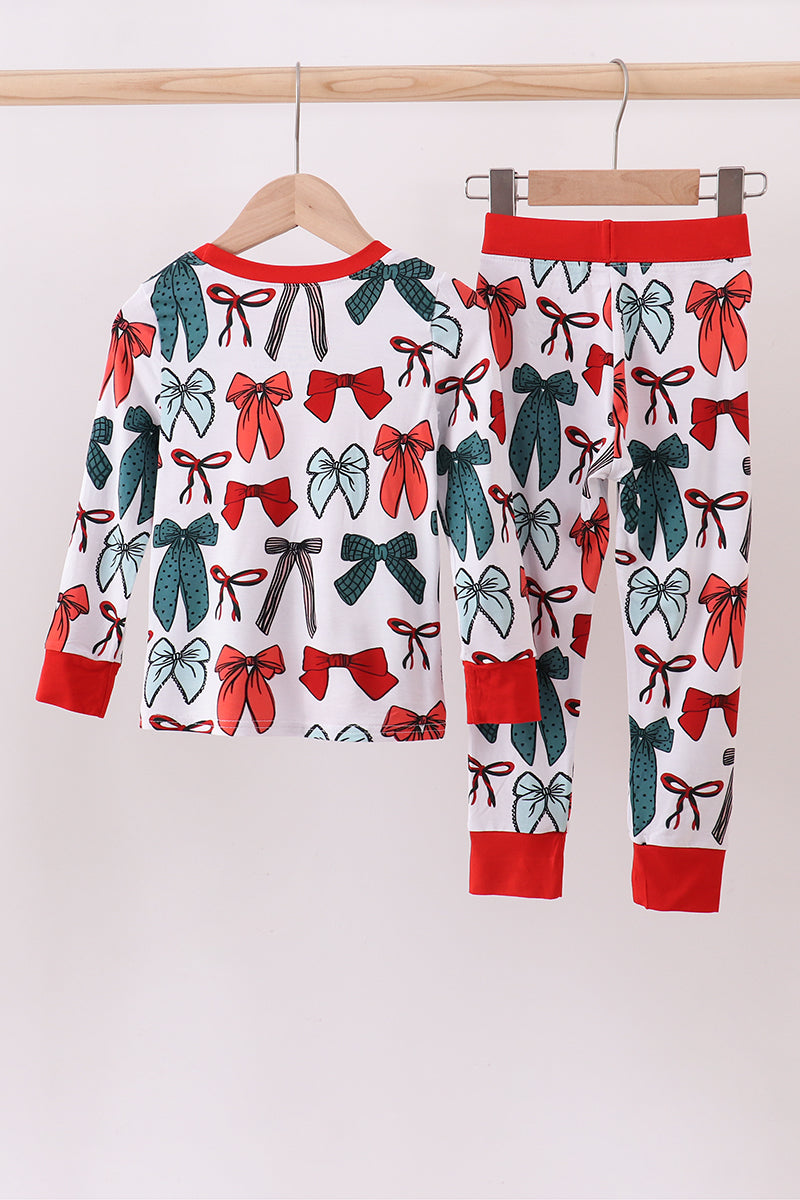 Dress your little one in cozy charm with this Red Bow Bamboo Girl Pajamas Pants Set. Crafted from soft bamboo fabric, it feels gentle on delicate skin while providing breathable comfort for a restful night. The playful red bow pattern adds a touch of fun, making bedtime something to look forward to. Perfect for lounging or sleeping, this set combines style and softness for happy, snug evenings.