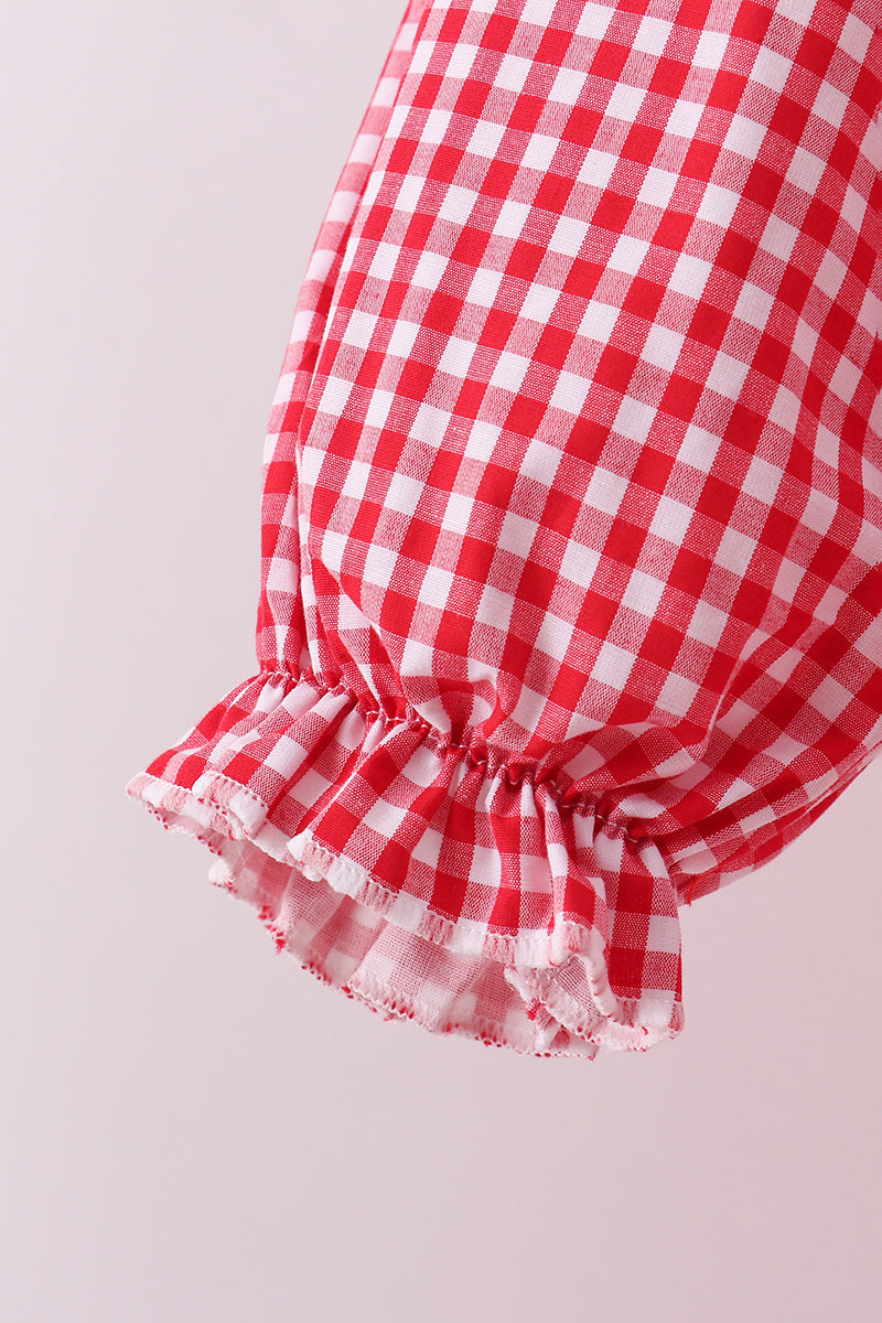 Red woven christmas tree reindeer smocked pants set